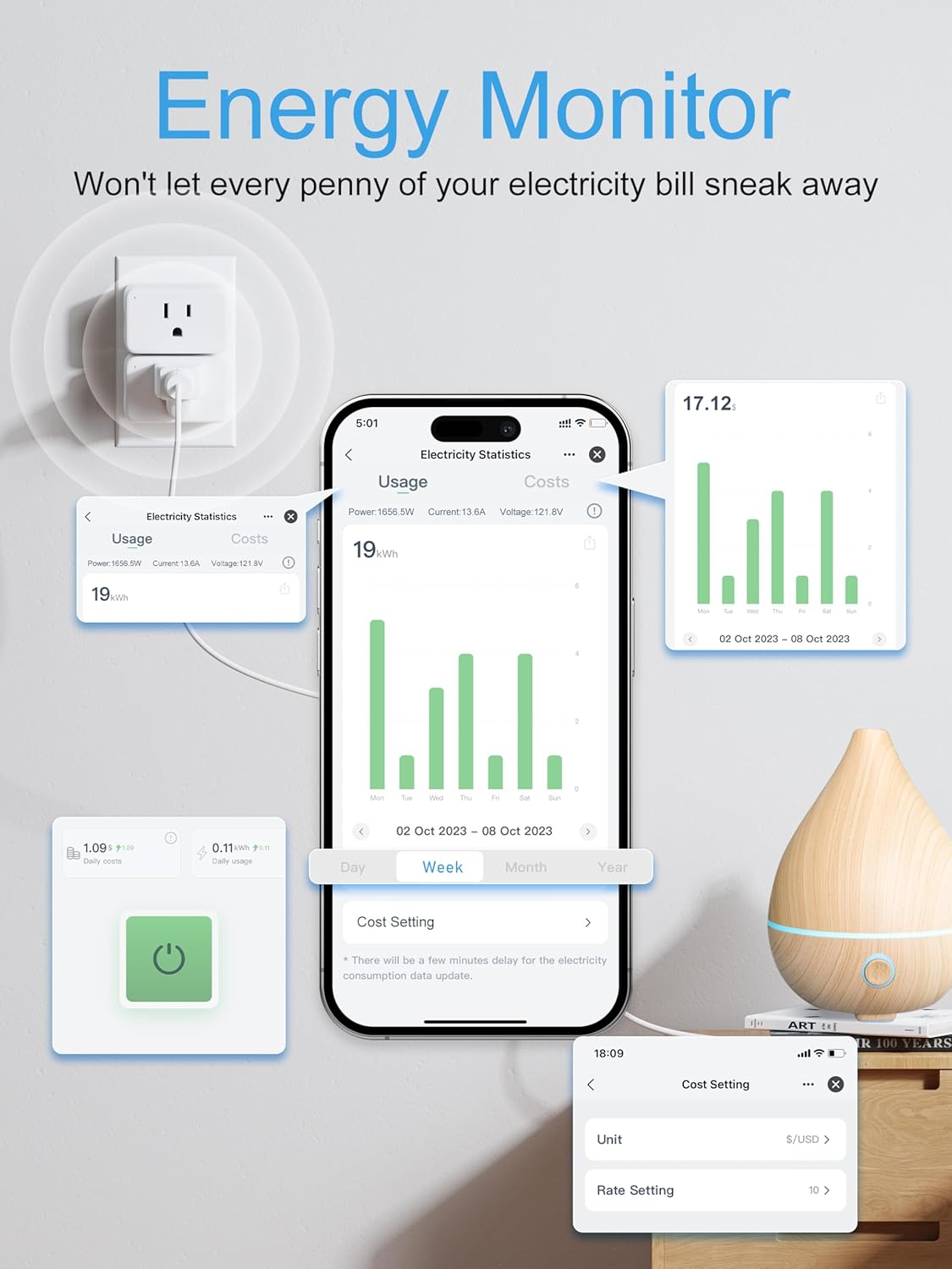 Equipped with energy monitoring capabilities, this smart plug allows you to track and manage your energy usage efficiently. Stay informed about your energy consumption and make informed decisions to reduce your carbon footprint and save on utility bills.